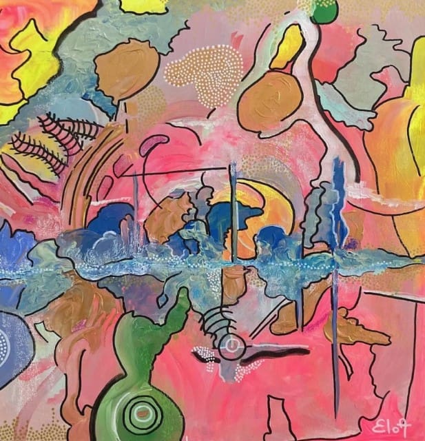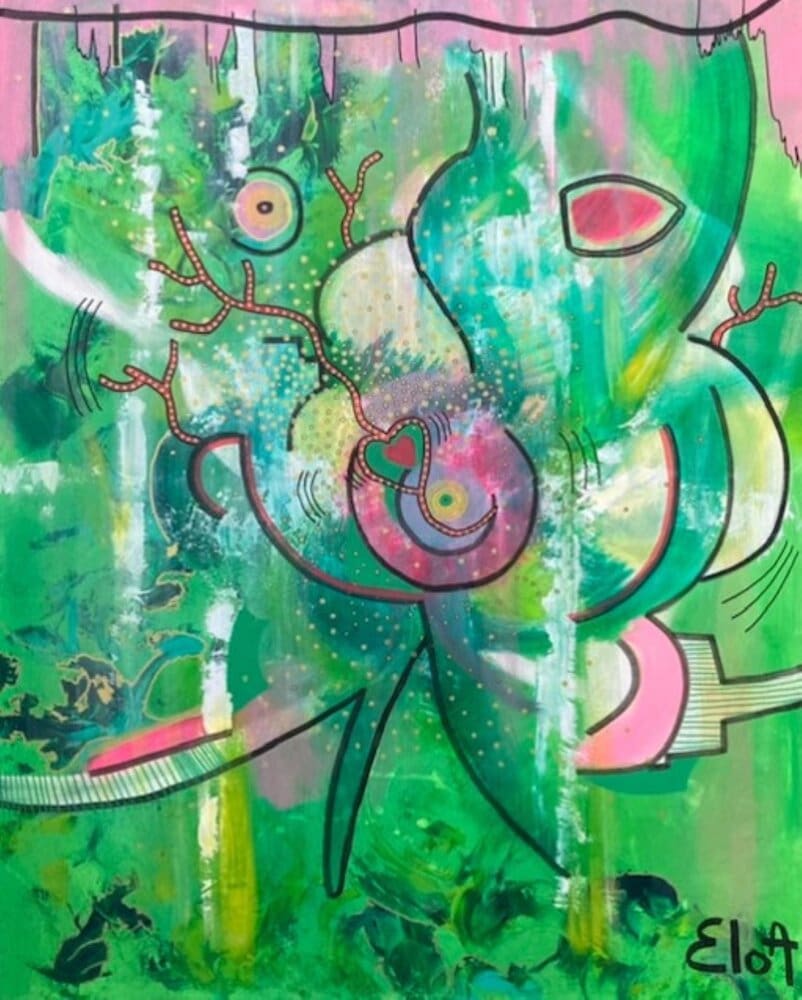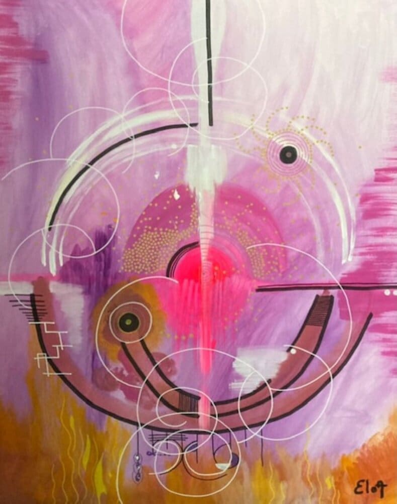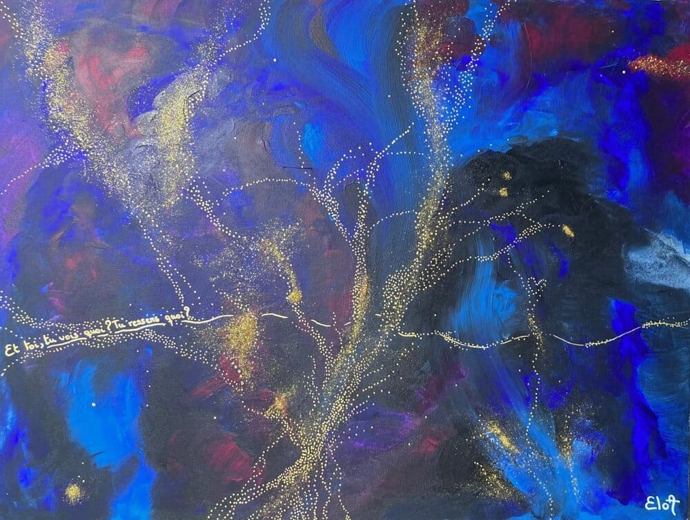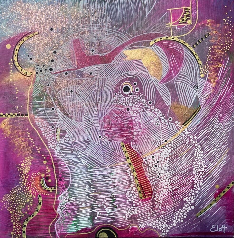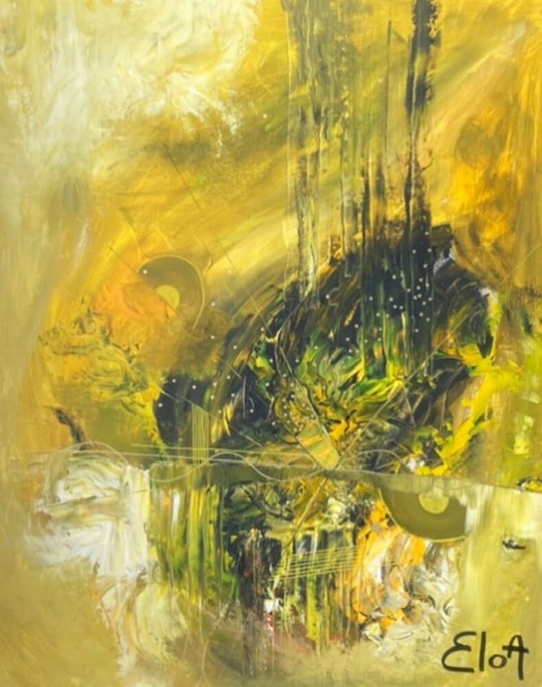 Chacune des toiles d’EloA transmet une vibration particulière. Des éléments en suspensions viennent créer une profondeur des espaces dans lesquels nos yeux divaguent vers une contemplation presque méditative.