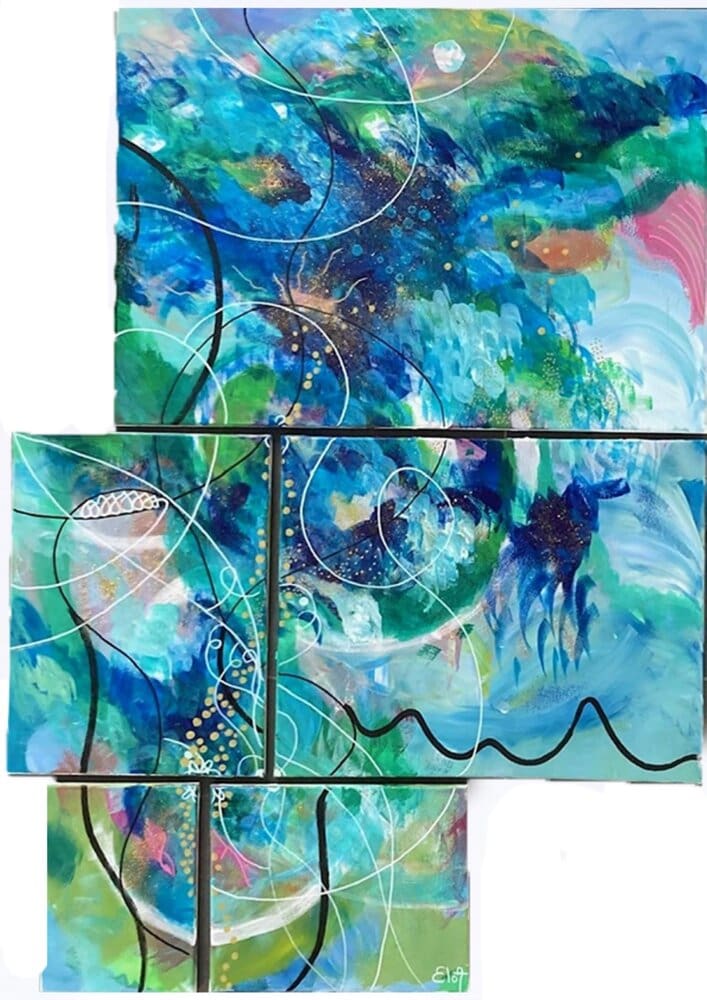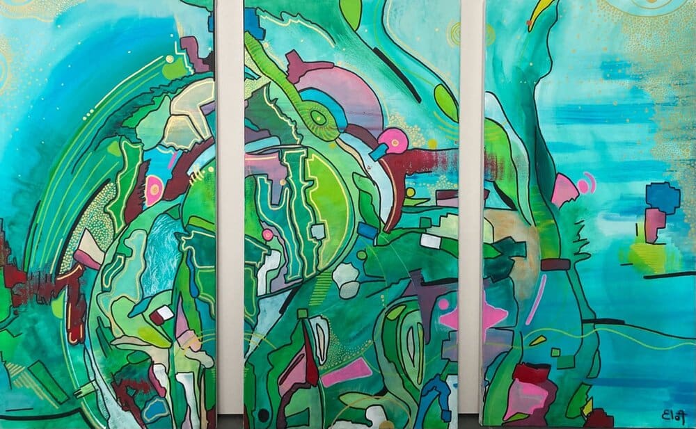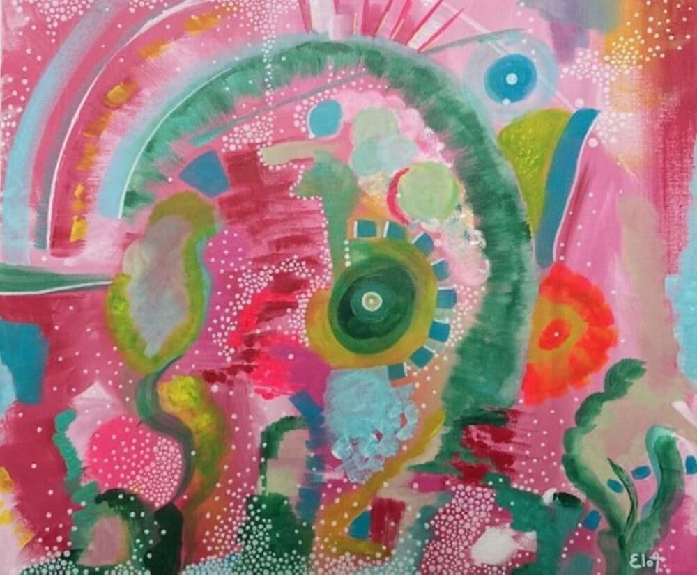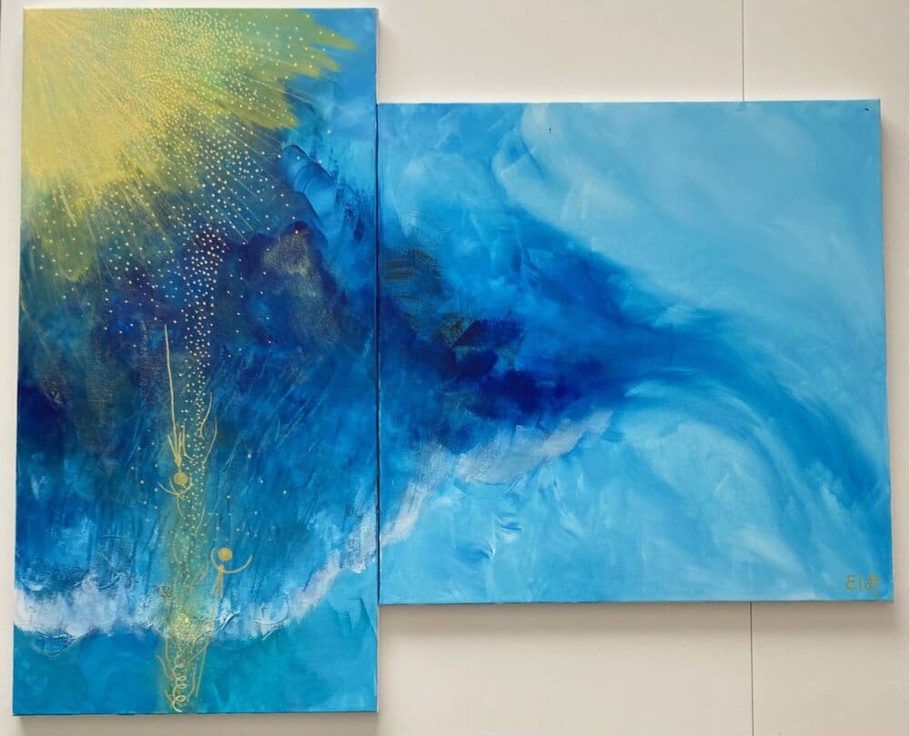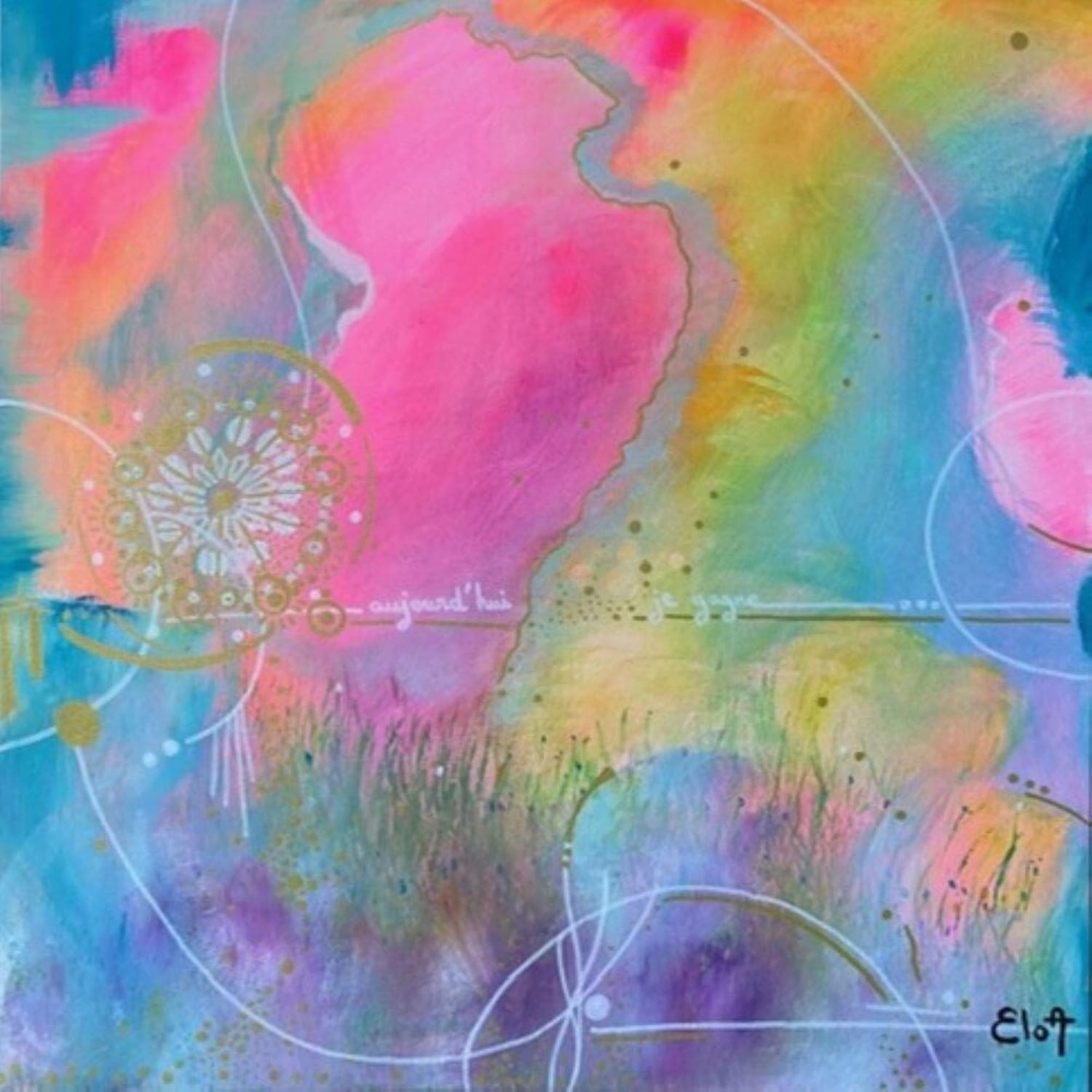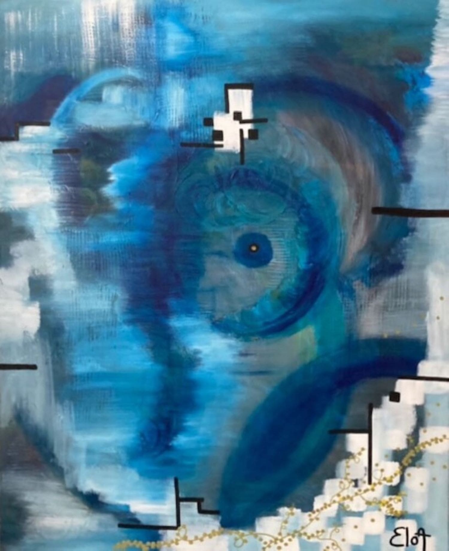 Chacune des toiles d’EloA transmet une vibration particulière. Des éléments en suspensions viennent créer une profondeur des espaces dans lesquels nos yeux divaguent vers une contemplation presque méditative.