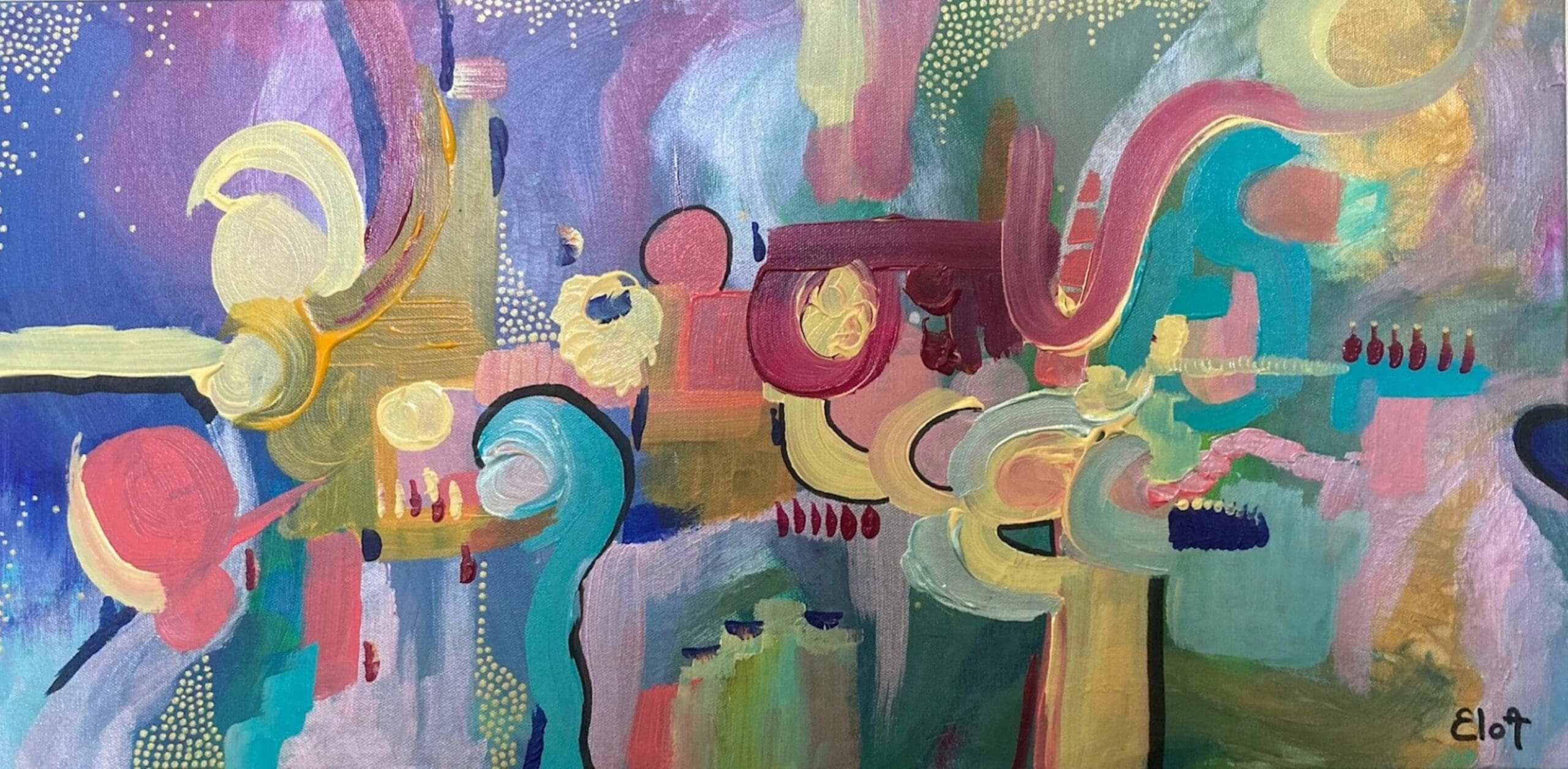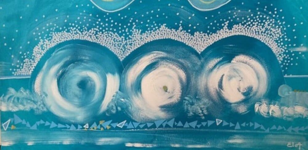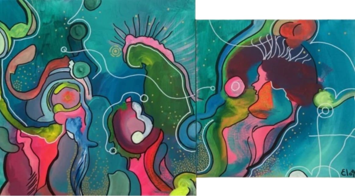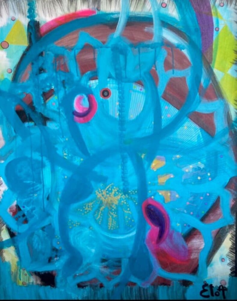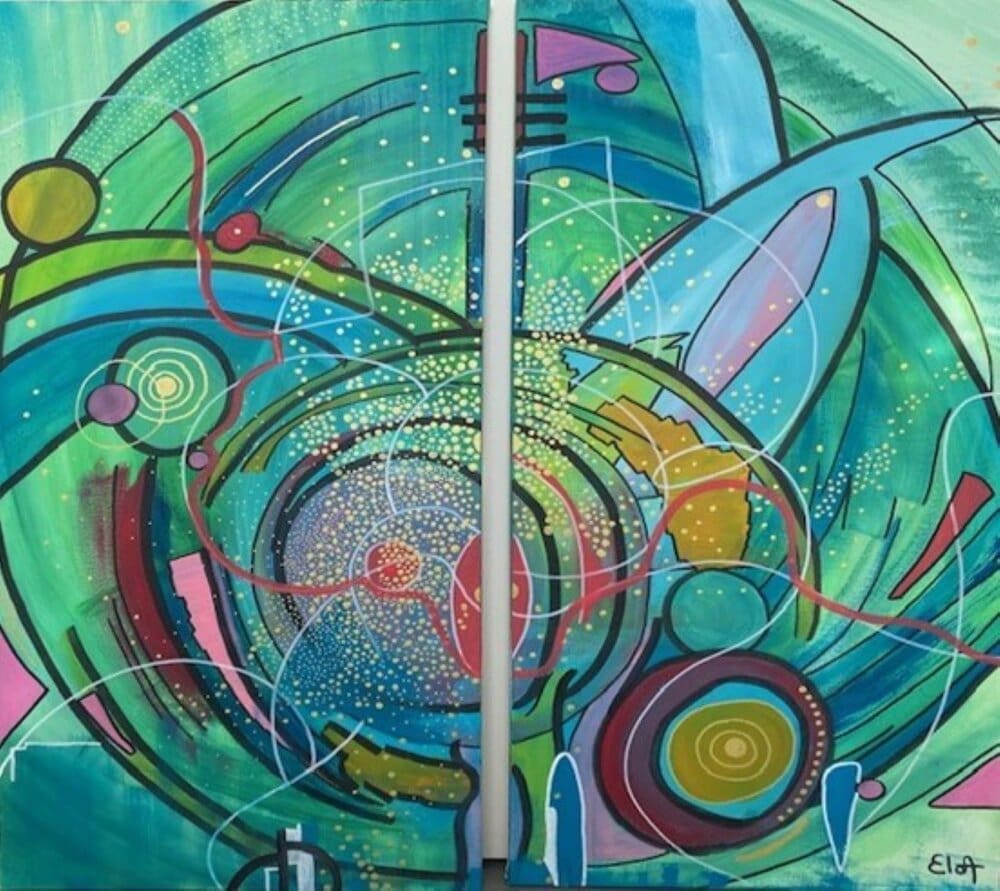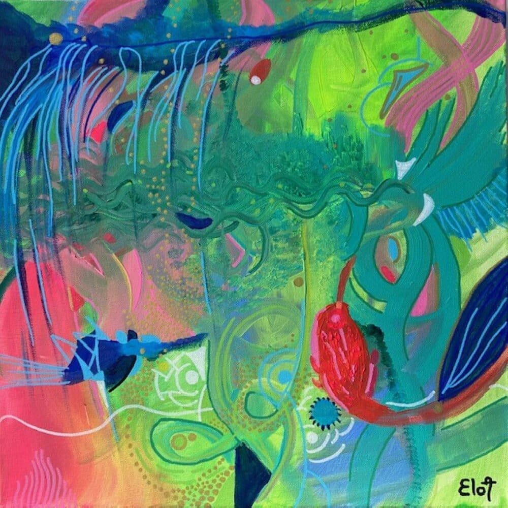 Chacune des toiles d’EloA transmet une vibration particulière. Des éléments en suspensions viennent créer une profondeur des espaces dans lesquels nos yeux divaguent vers une contemplation presque méditative.