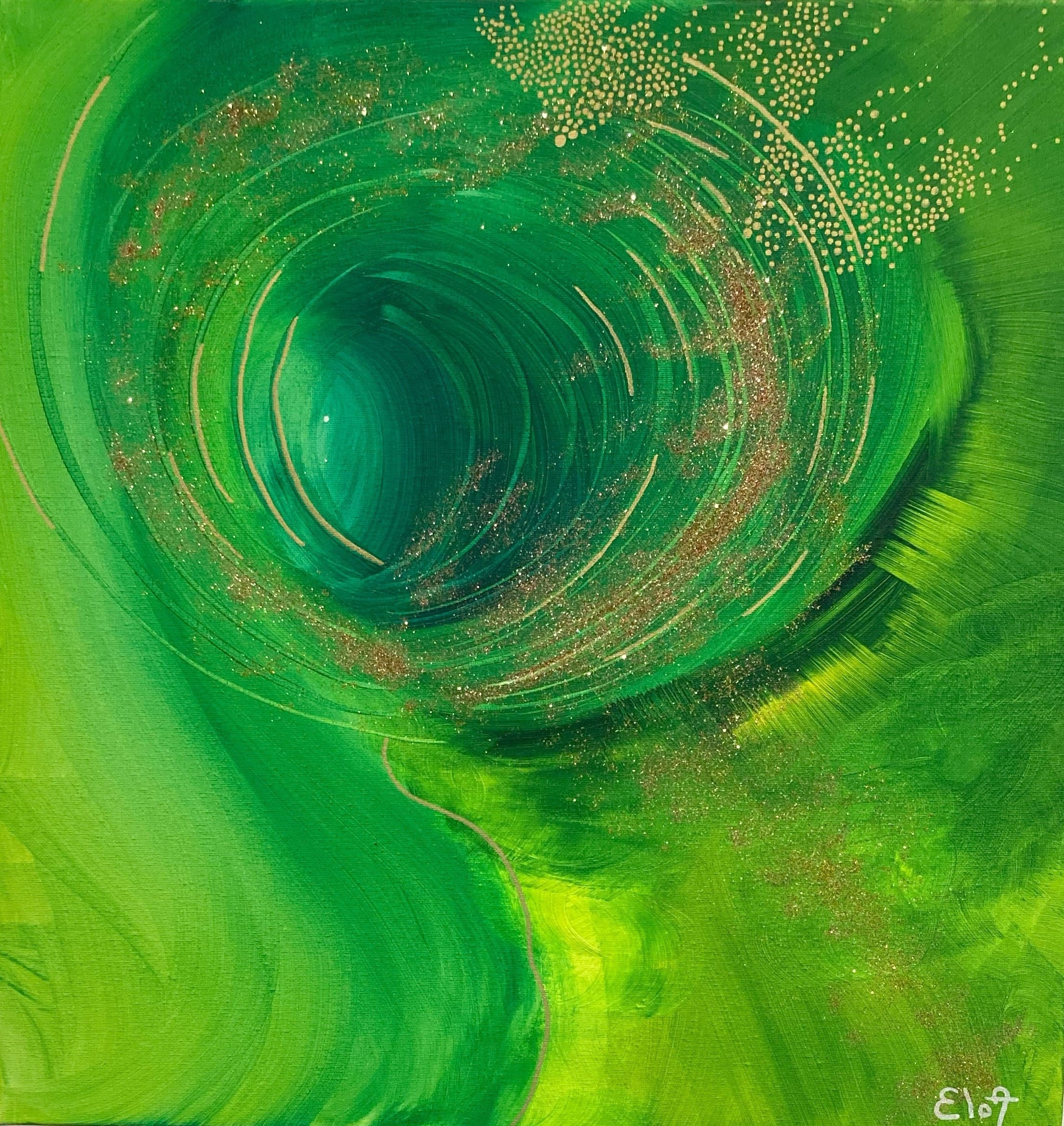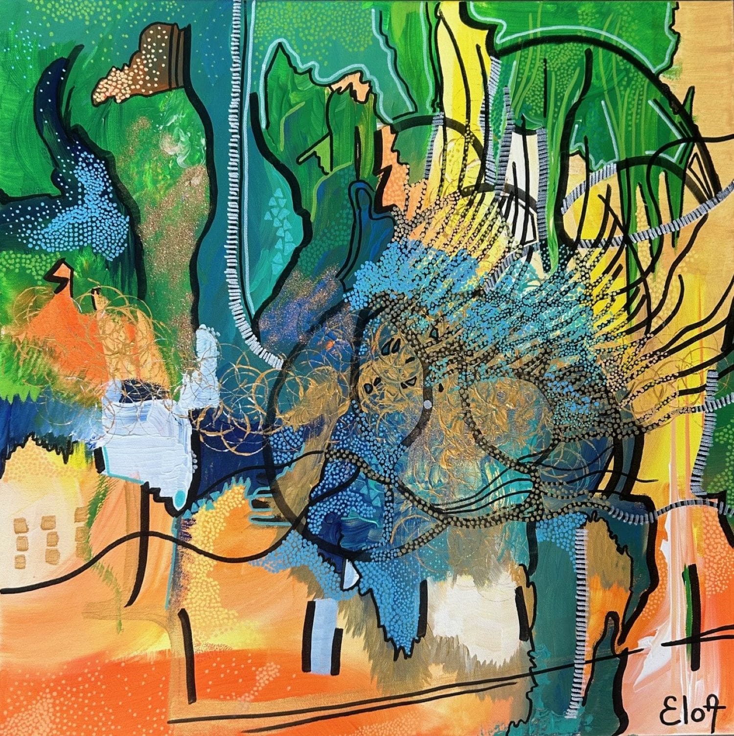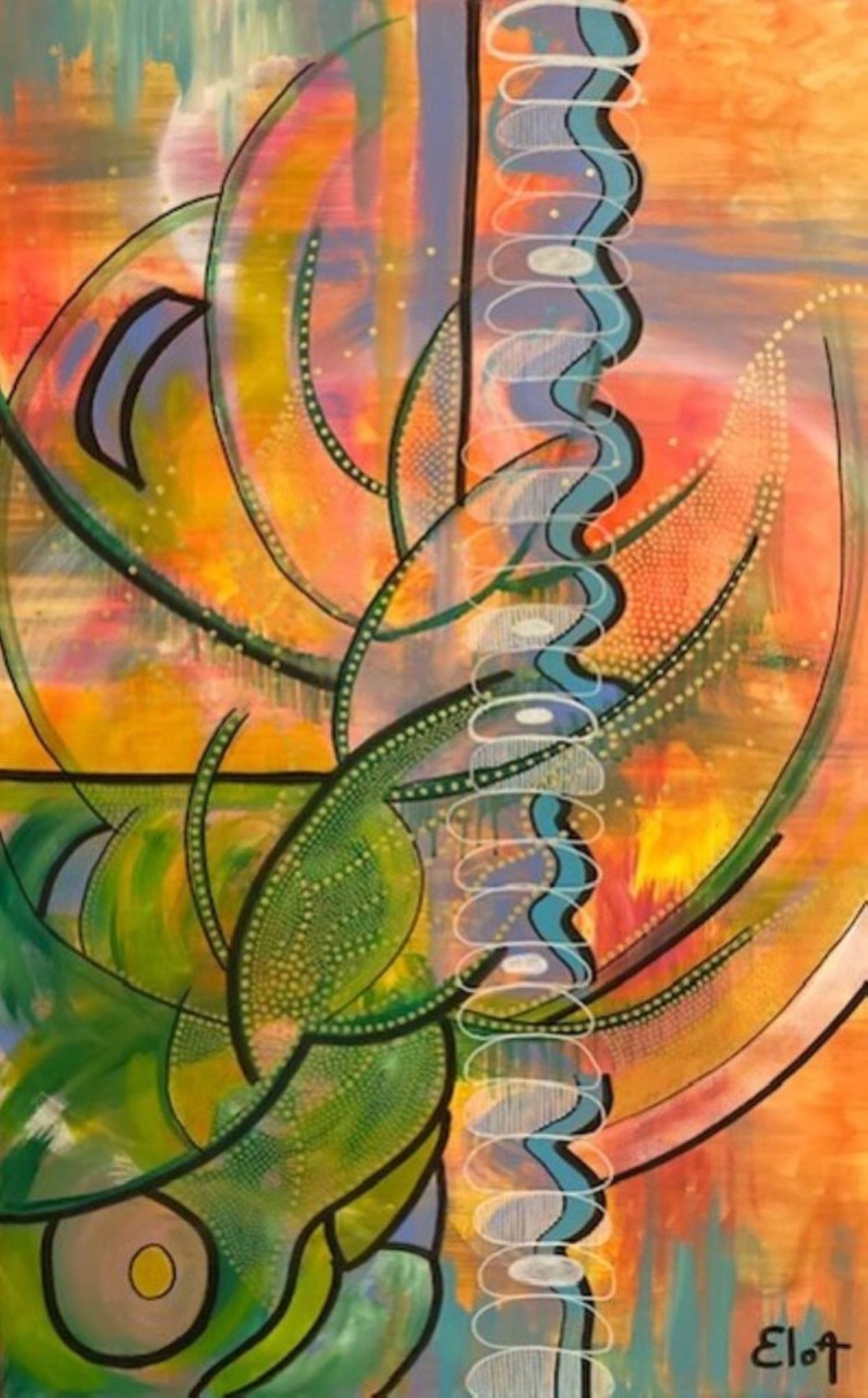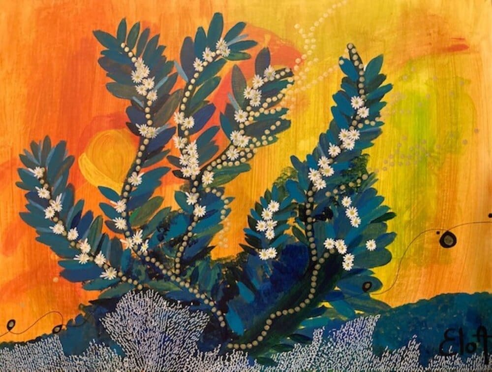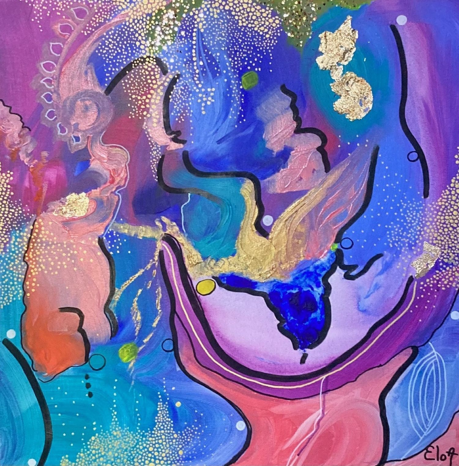 Chacune des toiles d’EloA transmet une vibration particulière. Des éléments en suspensions viennent créer une profondeur des espaces dans lesquels nos yeux divaguent vers une contemplation presque méditative.