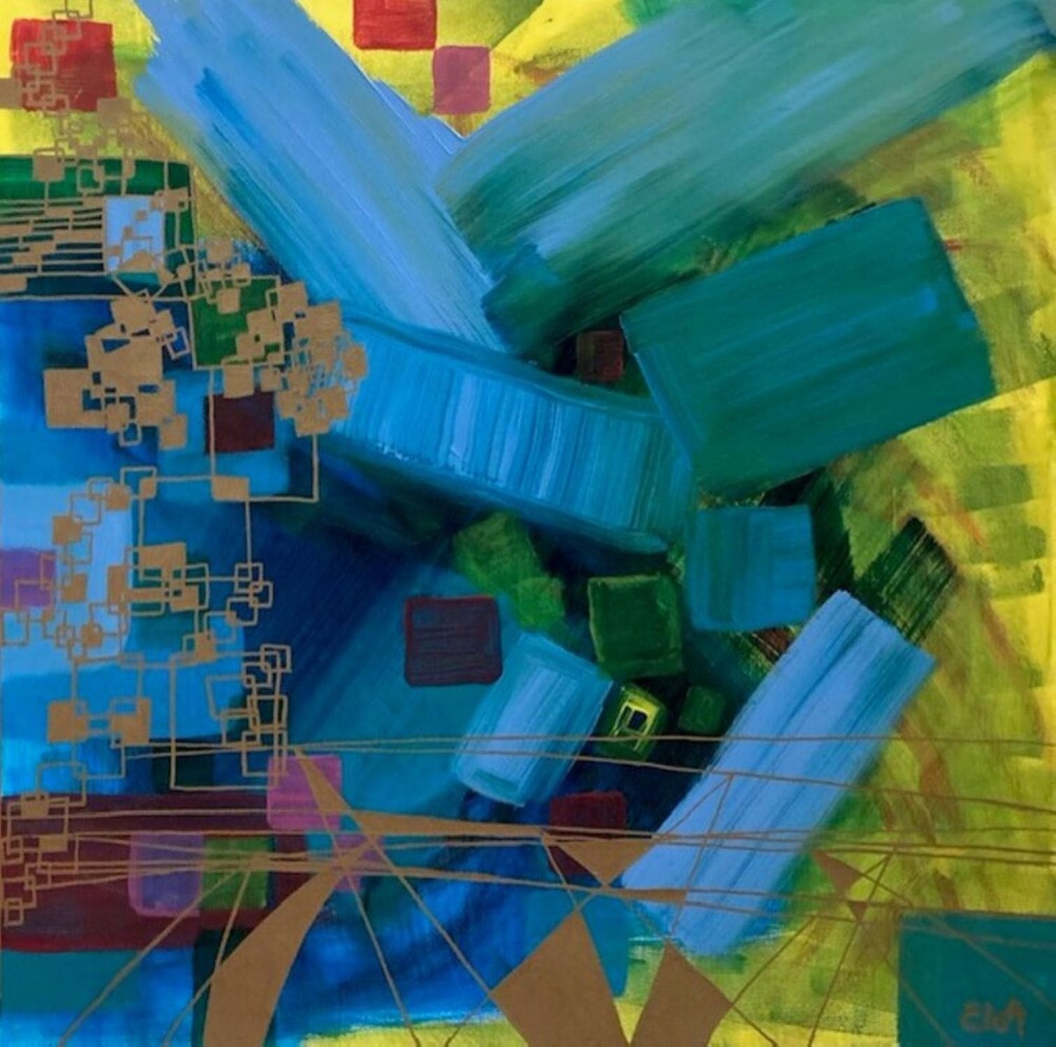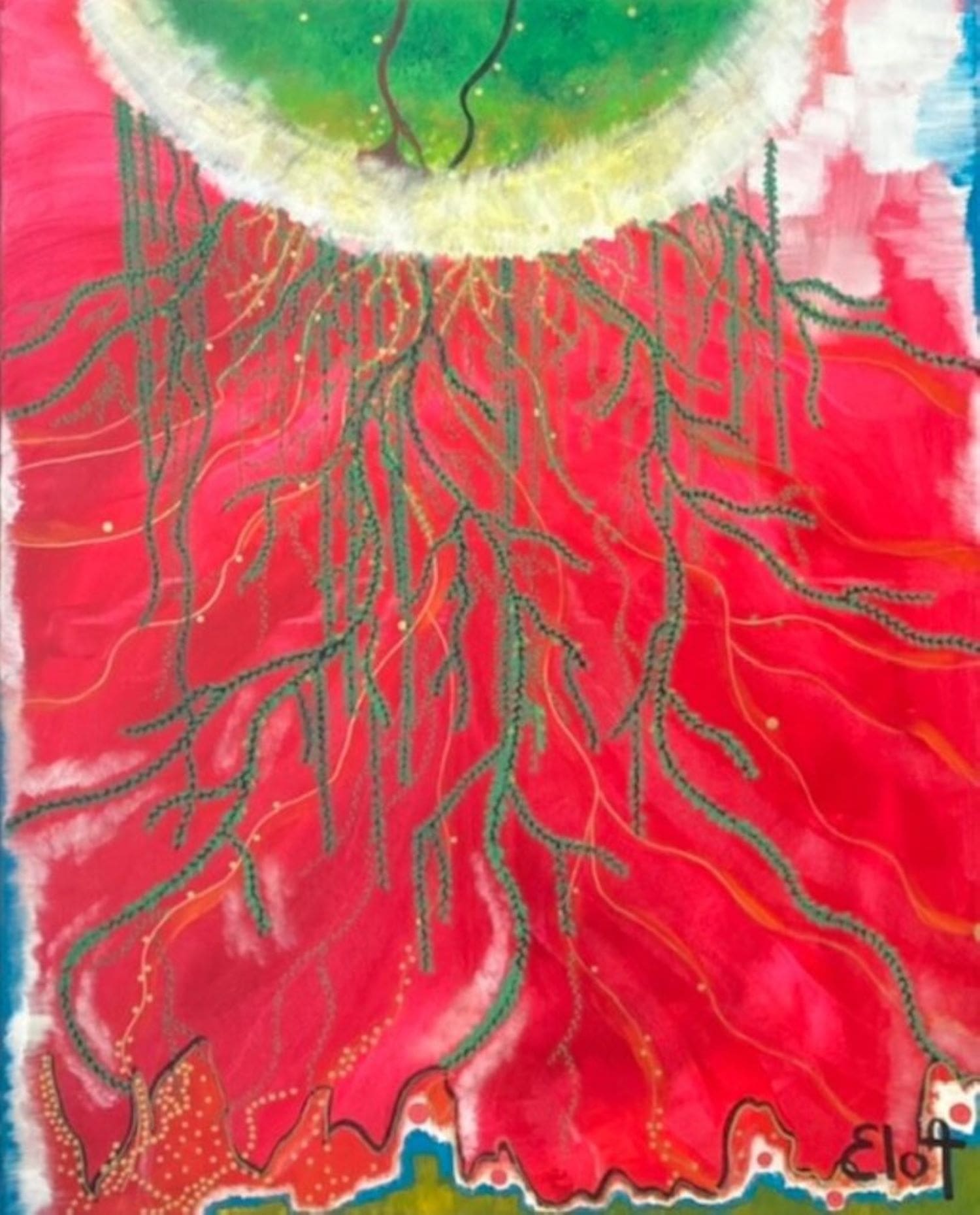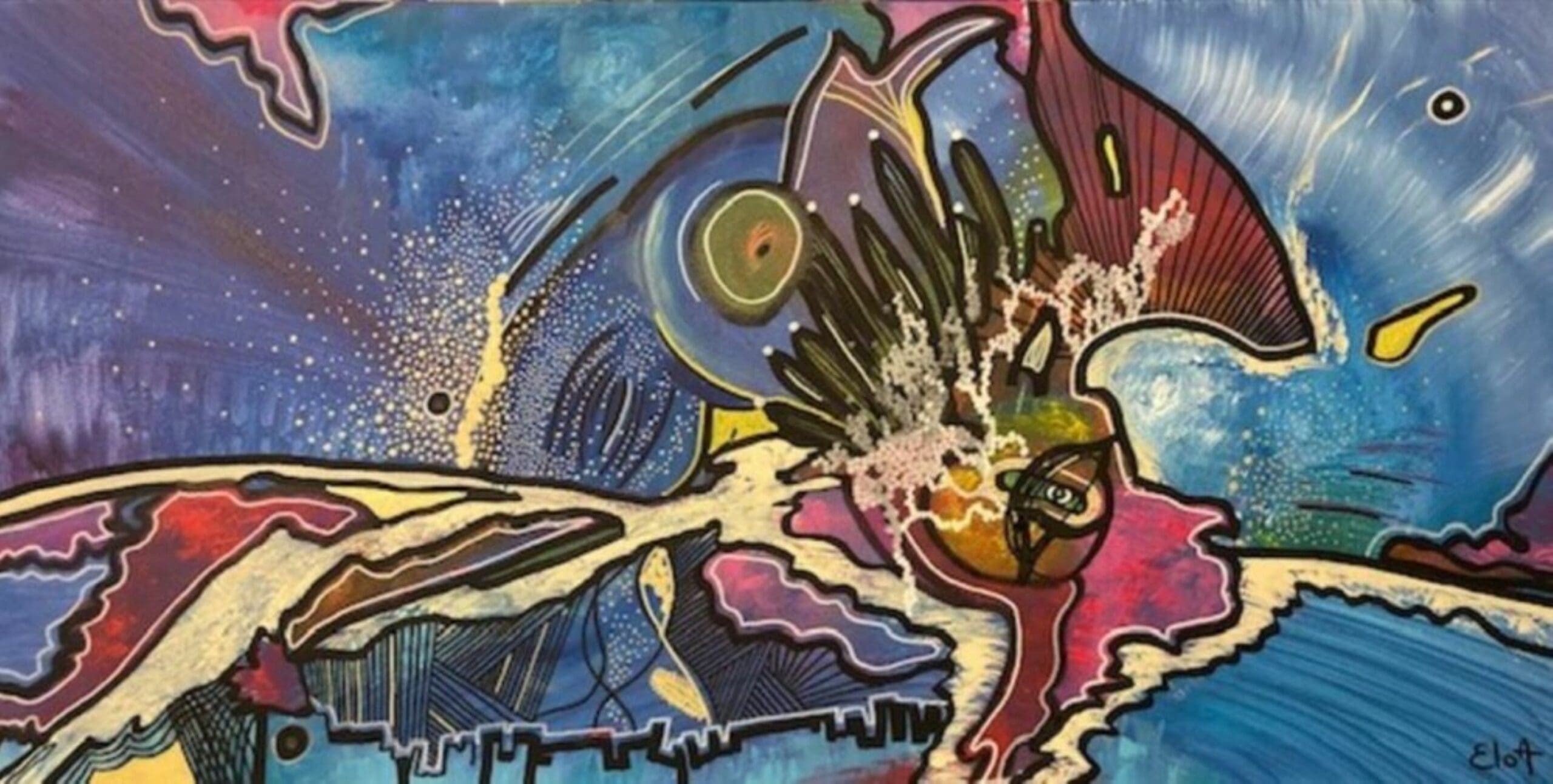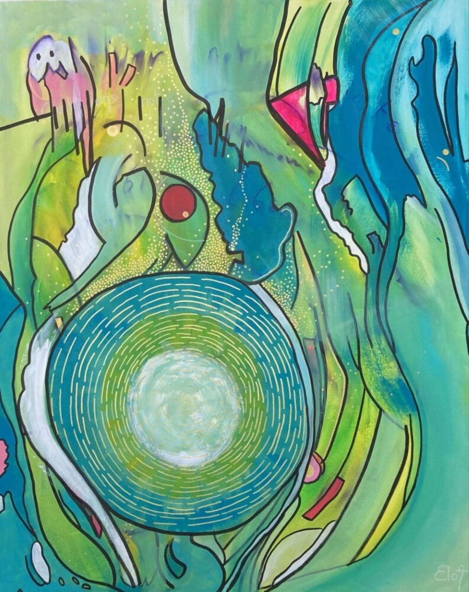 Chacune des toiles d’EloA transmet une vibration particulière. Des éléments en suspensions viennent créer une profondeur des espaces dans lesquels nos yeux divaguent vers une contemplation presque méditative.