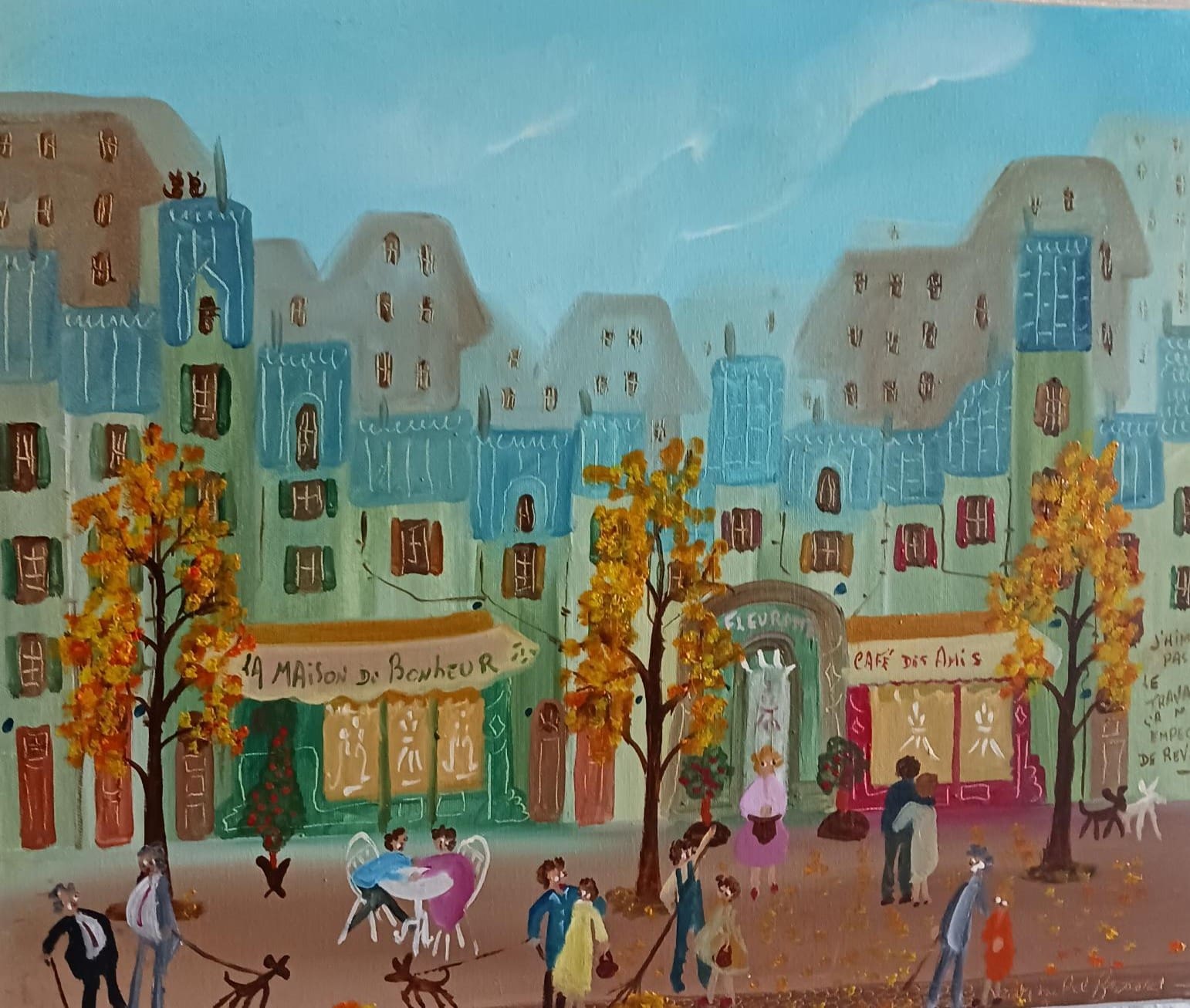 Sa peinture s’inscrit dans le mouvement de l’art naïf, les perspectives, les couleurs et la précision du trait ne respecte pas les règles conventionnelles. Ces œuvres nous transportent dans un monde magique et nous invitent à raconter une histoire.