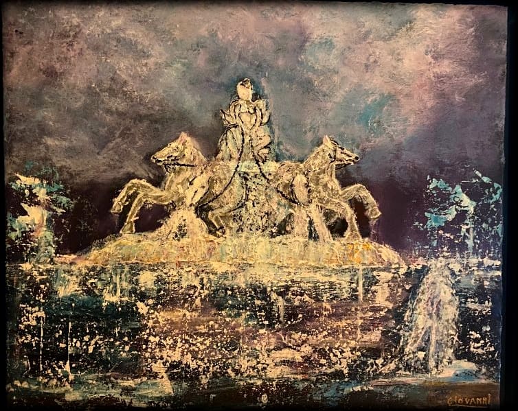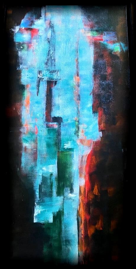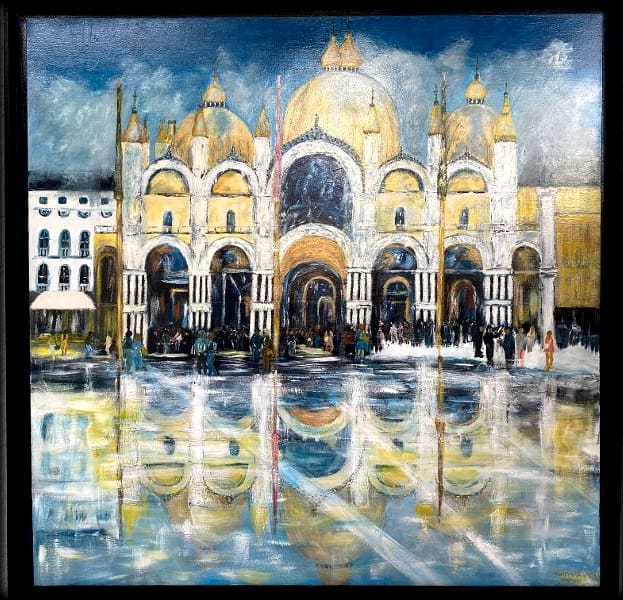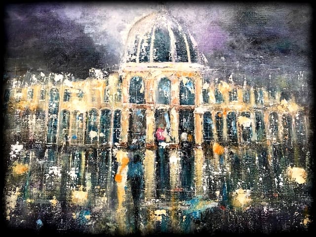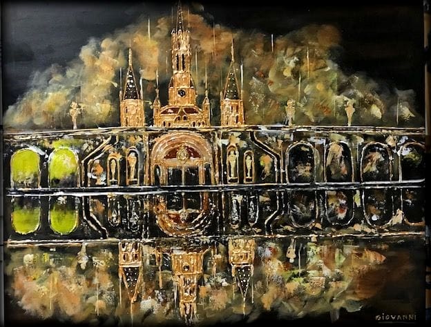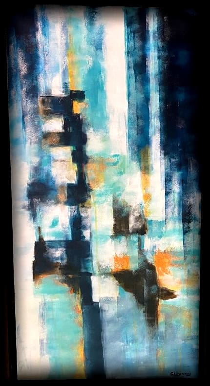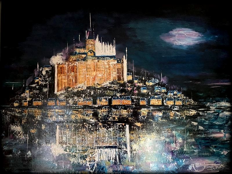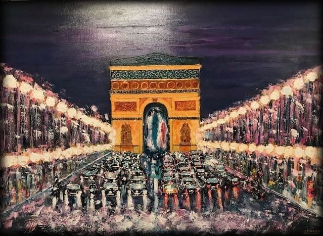 D’un fond sombre, l’artiste fait jaillir la lumière. Ces paysages urbains rendent hommage à la beauté des villes et de leur patrimoine architectural. On retrouve également cette technique du clair obscure sur ces abstraits ce qui offre une profondeur captivante à ces œuvres.