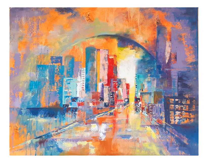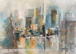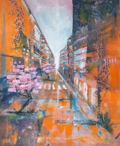 L’artiste a choisi de travailler l’huile au couteau pour avoir de la matière qui apporte reflets et brillance à ses œuvres.
