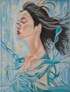 Son goût pour le figuratif et le portrait lui permette à chaque coup de pinceau de se rapprocher un peu plus de ses origines asiatiques.