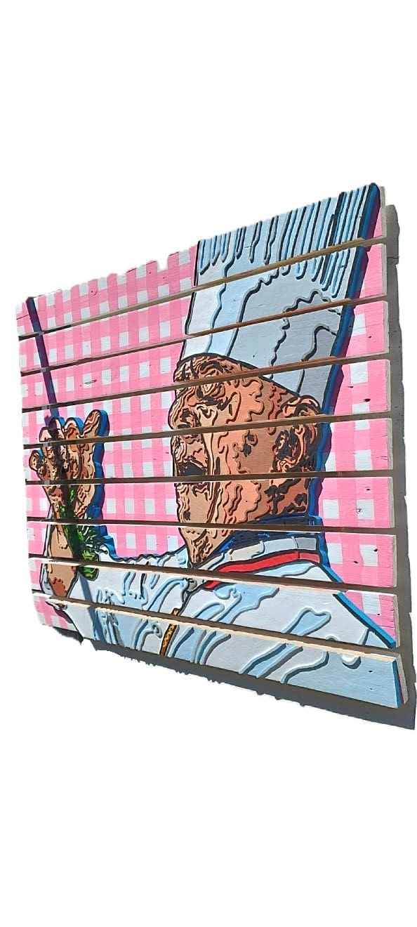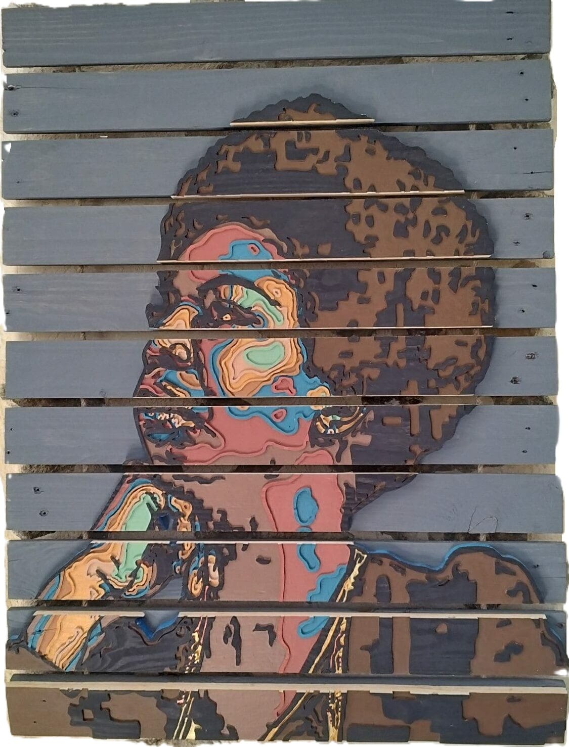 Yann est un artiste innovant qui se distingue par son approche unique de l’art pictural. Il puise son inspiration dans les ressources souvent négligées, transformant des palettes recyclées en œuvre d’art. Armé d’une défonceuse et de peinture acrylique, il crée des œuvres qui captivent par leur profondeur. Sa technique singulière lui permet de réaliser des portraits saisissants, empreints d’une identité visuelle forte et reconnaissable entre mille. Le relief souligne les expressions et le caractère des sujets représentés.