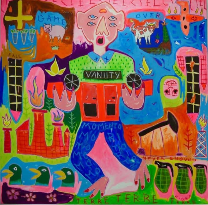 Il créer un univers singulier entre le brut et le naïf dans lequel il souhaite impulser notre envie de changement profond, de renouer à l’essentiel.